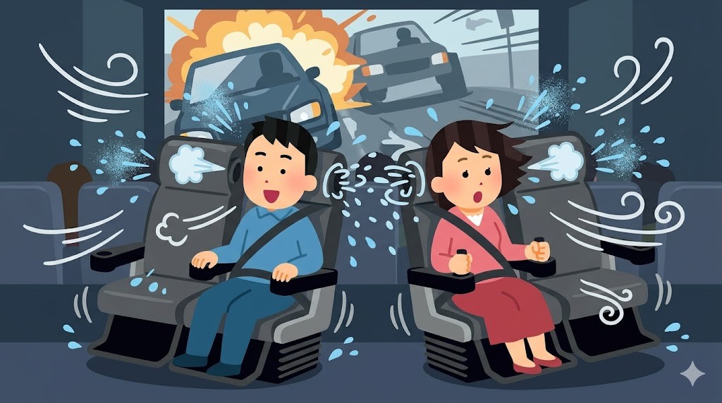 例えば、爆発シーンでは衝撃に合わせて体が揺れ、カーチェイスではスピードに合わせて風を感じるため、視覚だけでは得られないリアルな体験が可能です。