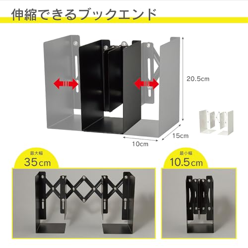 伸縮型ブックエンドの最大の特徴は、収納量に合わせて幅を自由に調整できる点です。