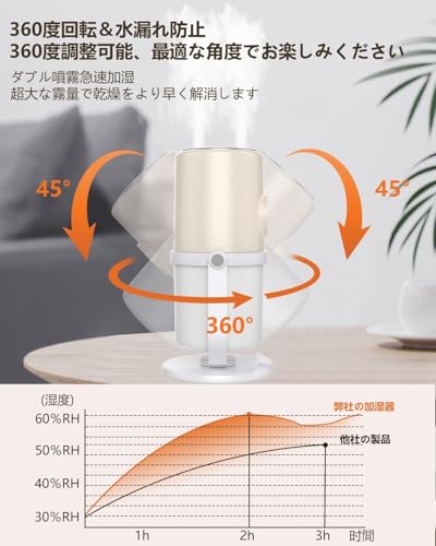 加湿したい場所へ気軽に持ち運べる点は、従来の据え置き型加湿器にはない大きなメリットです。