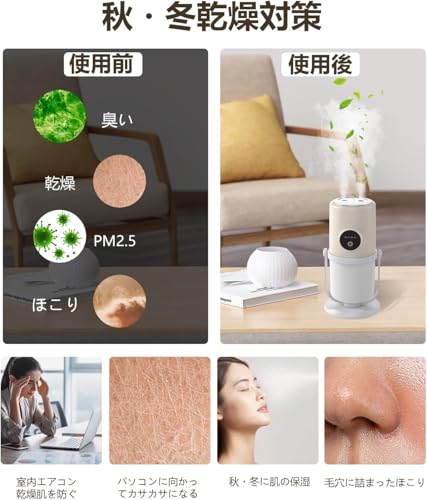 乾燥しやすい季節やエアコン使用時、コードレス加湿器は場所を選ばず使える便利な存在です。