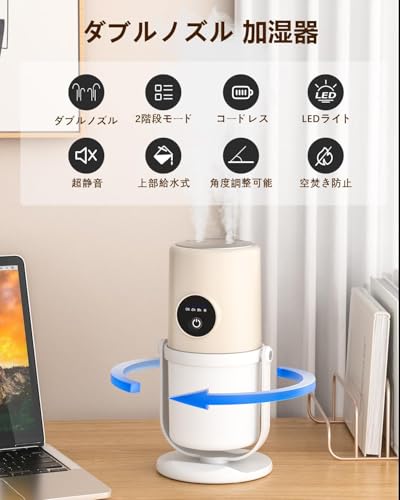 乾燥しやすい季節やエアコン使用時、コードレス加湿器は場所を選ばず使える便利な存在です。