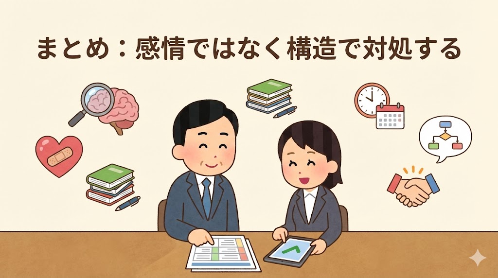 構造化・要約・確認という基本を徹底するだけでも、ズレは大幅に減らせます。