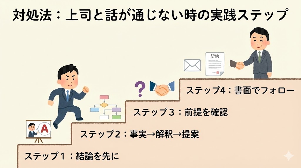 「何度説明しても上司に話が通じない」「結論を言ったのに違う指示が返ってくる」――こうした悩みは、多くの職場で起きています。