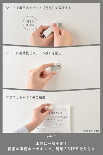 スチールプレートを壁に固定することで、その上にマグネットを吸着できるスペースが生まれます。これにより、磁性のない壁であっても、まるでマグネットボードのように使えるようになります。