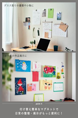 「必要な場所にだけマグネットを使える」という利点により、既存の壁や家具を傷つけることなく整理の自由度が高まります。特に、賃貸住宅では自由に使えるマグネットスペースが少ないため重宝されています。