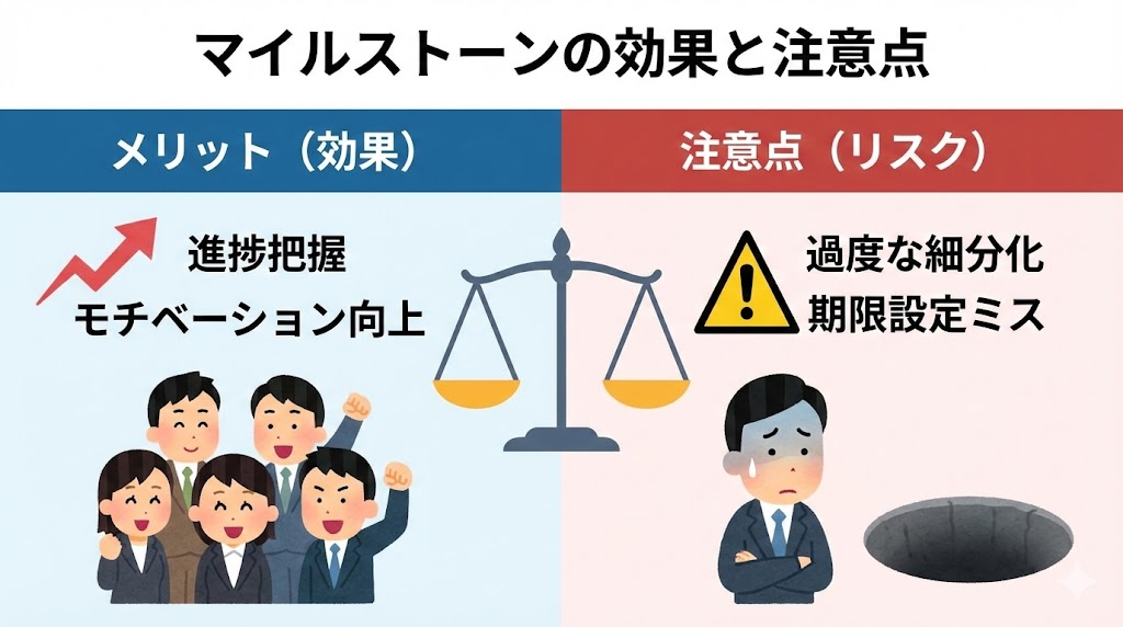マイルストーンの効果(メリット)と注意点?進捗把握とリスク管理
