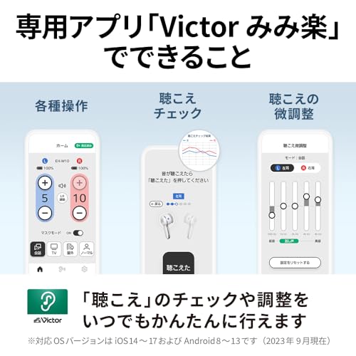 ビクターみみ楽の価格帯は、エントリーモデルであるEH-A580が1万円台後半から、高性能モデルであるEH-W10が3万円台までと幅広く設定されています。価格が上がるほど、通信の安定性や音質の向上、ノイズキャンセリング機能の精度などが強化されます。特にEH-W10は高性能マイクを搭載しており、周囲の雑音を抑えながらクリアな音声を提供することが可能です。また、音の臨場感を高める機能や、細かい音の変化まで再現するチューニングが施されており、より豊かな音体験を求める方に向いています。一方、コストを抑えたい場合でもEH-A580は十分に満足できる品質を持ち、日常的なテレビ視聴や会話の補助として活用するには申し分ありません。購入者の用途や予算に合わせて選択できる点も魅力です。