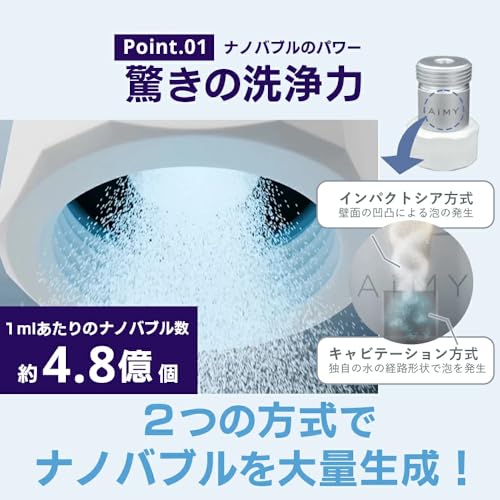 節水や洗浄向上は発生量と気泡の微細さに依存するため、スペックが高いほど理論上は効果が期待できますが、実際には設置条件による影響も大きい点を覚えておきましょう。