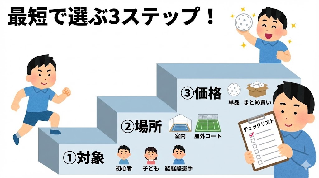 ここからは、できるだけ短時間で、自分に合ったボールを見つけるための実践的な3ステップを紹介します。