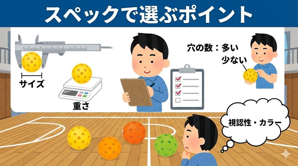 ここでは、数値や仕様といったスペック情報から、ピックルボールを選ぶ際の重要ポイントを詳しく解説します。