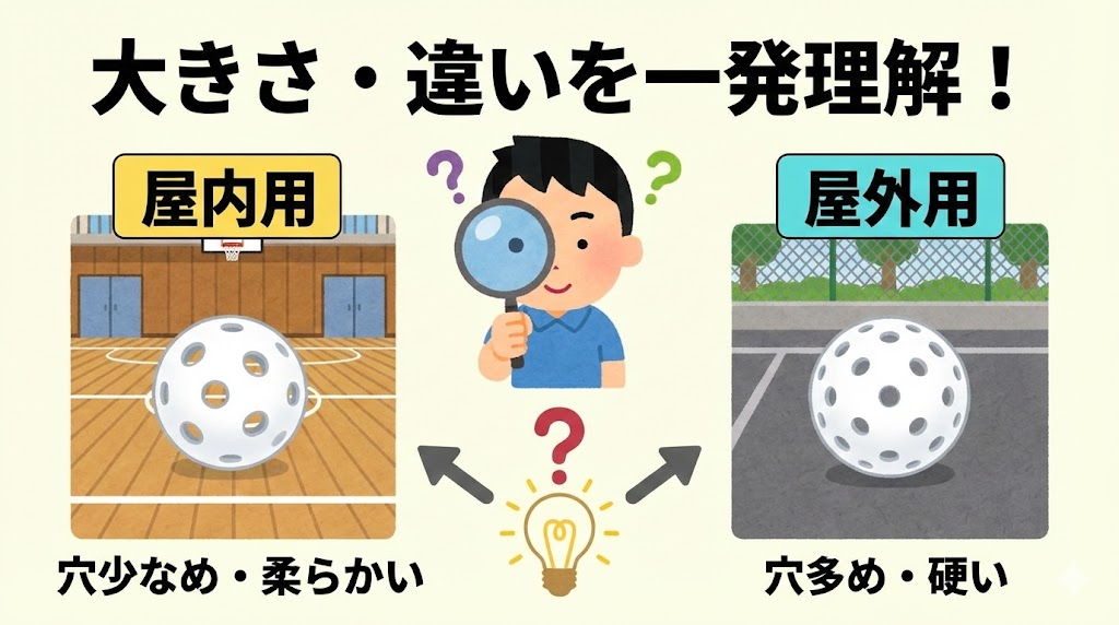 屋内と屋外で何が変わる?大きさ・素材・ボール穴の数の違い