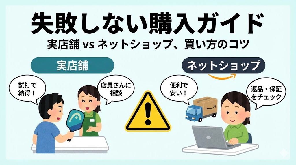 パドルは購入場所によって、価格・サポート・安心感が大きく異なります。どこで買うかを意識することで、トラブルを避けつつ、お得に購入することができます。