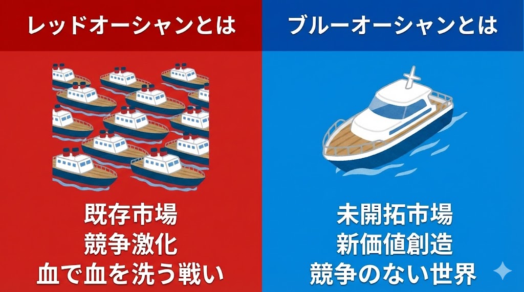 本記事では、レッドオーシャンとブルーオーシャンの違いを基礎から整理し、