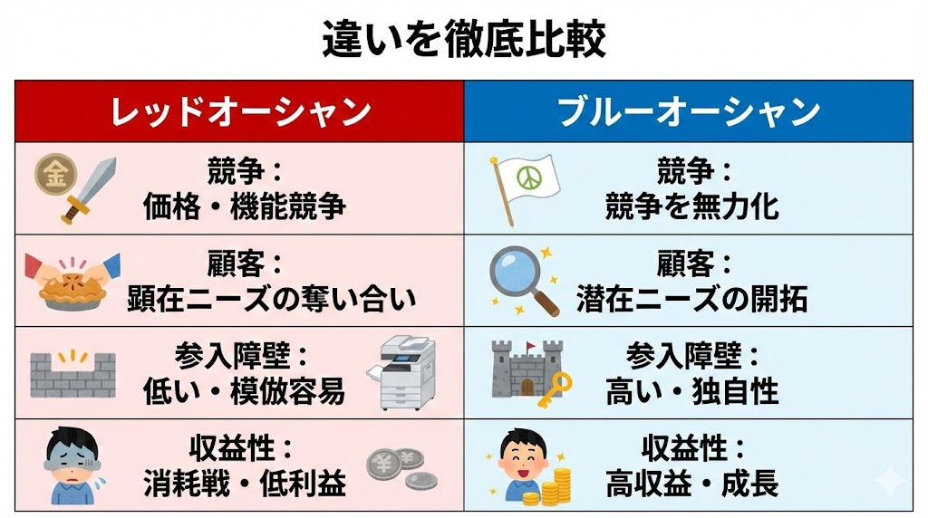 レッドオーシャンとブルーオーシャンの違いを徹底比較