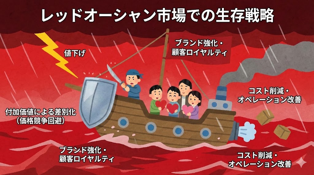レッドオーシャンでは、商品やサービスが似通っているため、