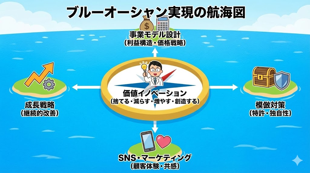 ブルーオーシャンを狙う視点を取り入れる価値があります。