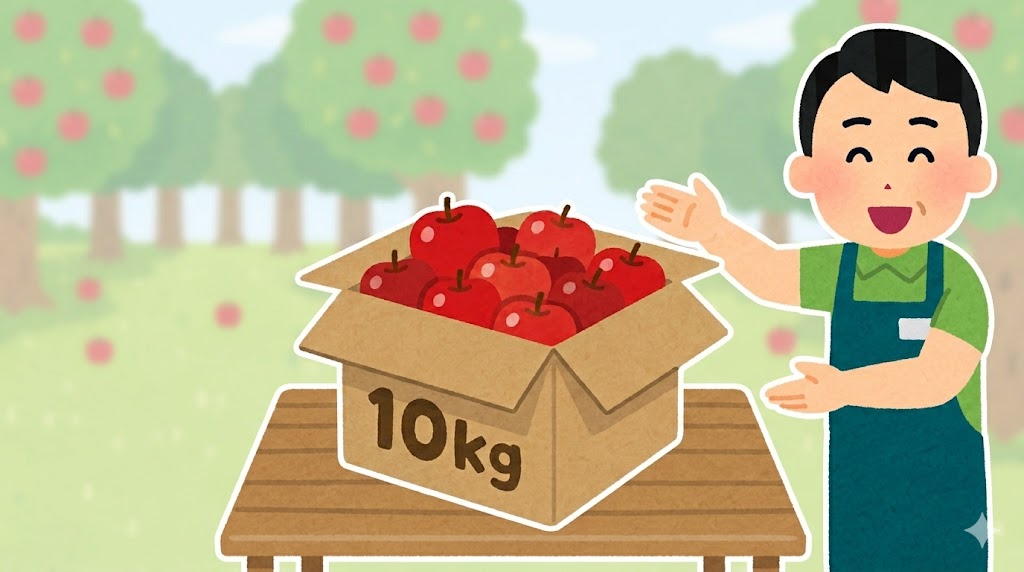一方、通販や産地直送の商品は、品質が良く大玉のりんごが多く入ることがあり、同じ10kgでも個数は少なめになることがあります。