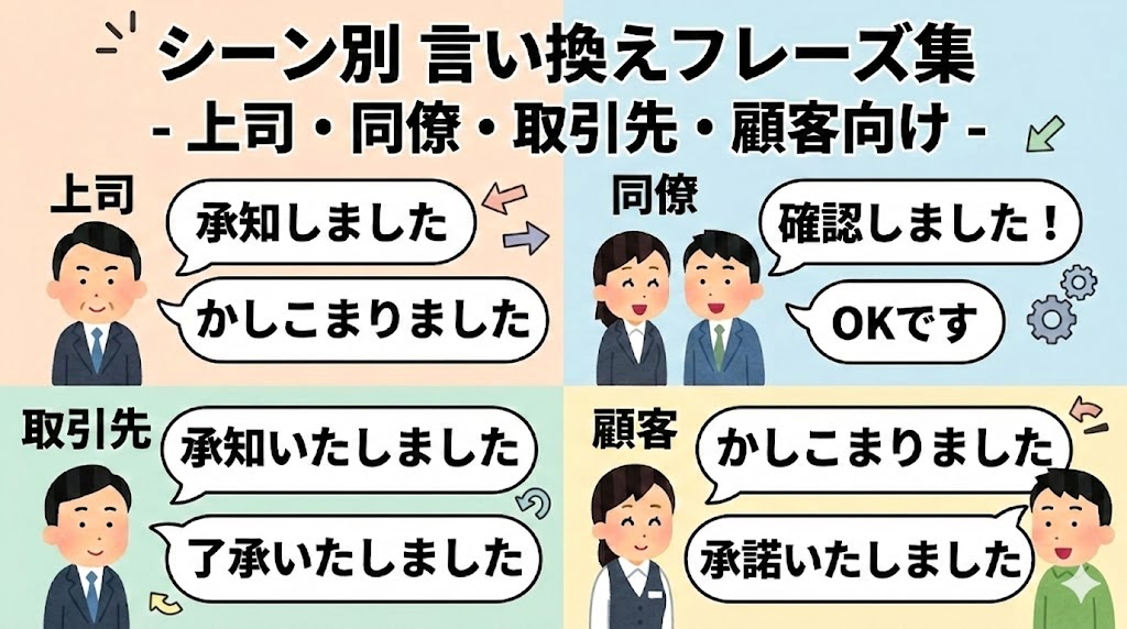 シーン別 言い換えフレーズ集 – 上司・同僚・取引先・顧客向け