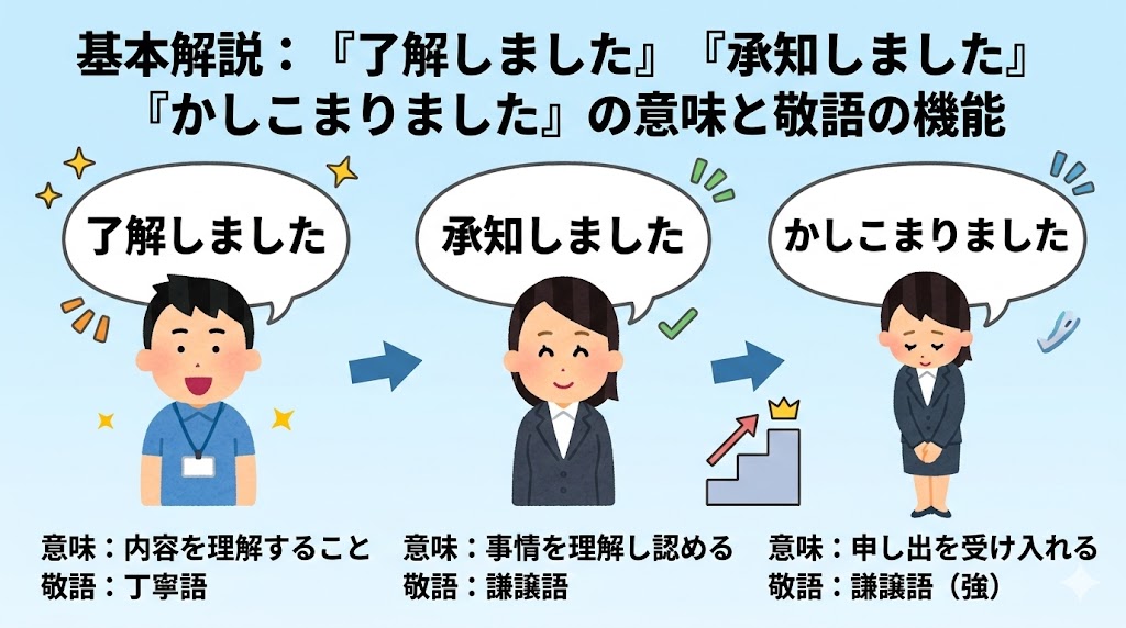 基本解説:『了解しました』『承知しました』『かしこまりました』の意味と敬語の機能