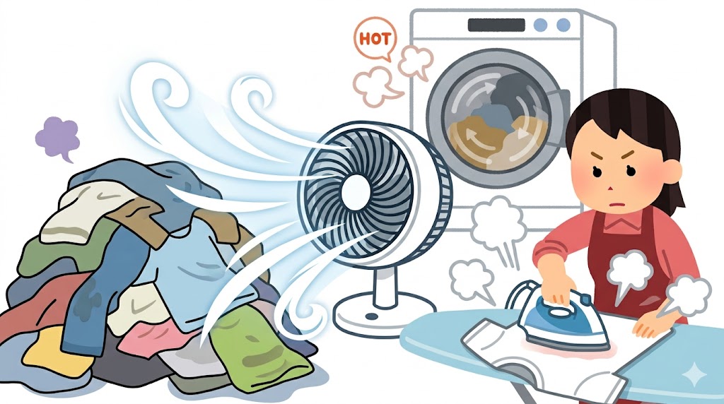 扇風機やサーキュレーターは、洗濯物に直接風が当たる位置に設置しましょう。