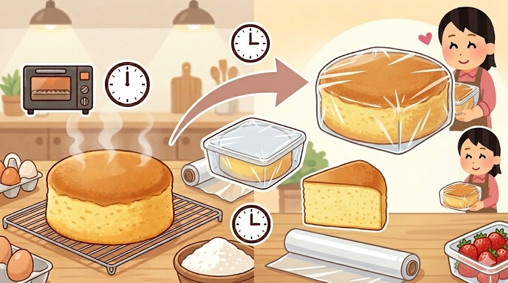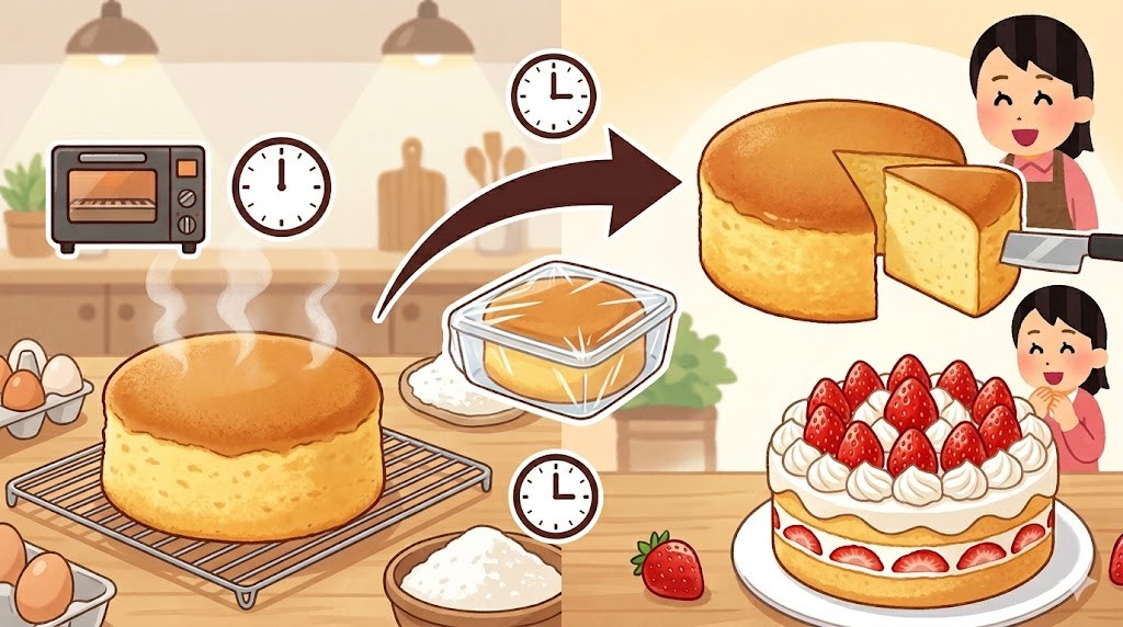 スポンジケーキは「焼きたてが一番美味しい」と思われがちですが、実は1日置くことで味や食感が格段に良くなるケースが多いです。
