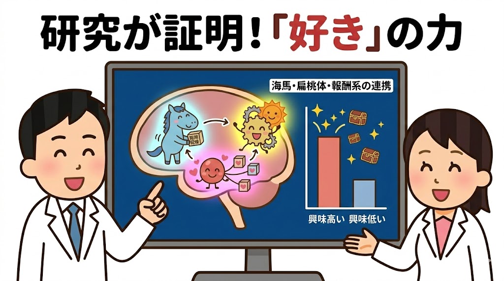 好き(興味・感情・報酬)が記憶の定着を強力に後押ししていることが明らかになっています。