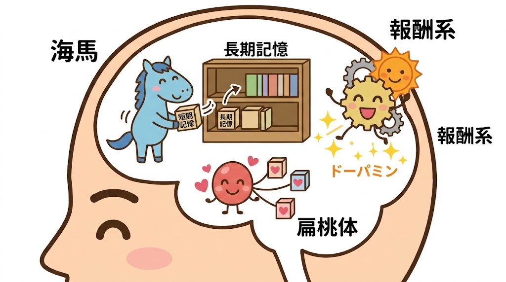これは、好きなことが記憶に残りやすい神経学的根拠といえます。