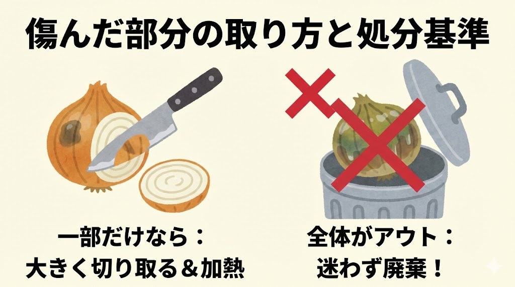 傷んだ部分の取り方と処分基準(使いかけ・丸ごとそれぞれ)
