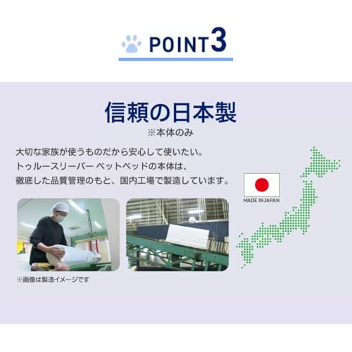 トゥルースリーパー ペットベッドは、特別に開発された低反発ウレタンを使用しており、愛犬の体にぴったりとフィットします。