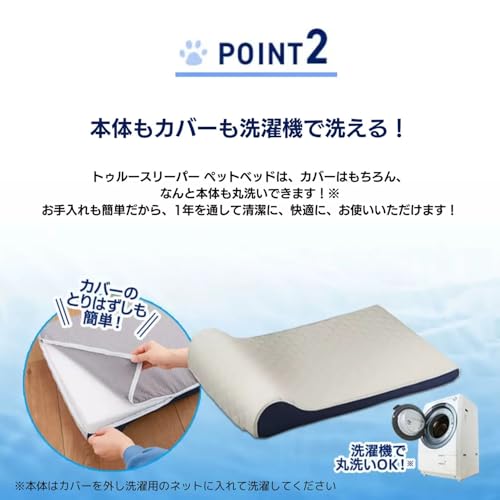 トゥルースリーパー ペットベッドは、取り外し可能なカバーが付いているため、いつでも簡単に洗濯が可能です。